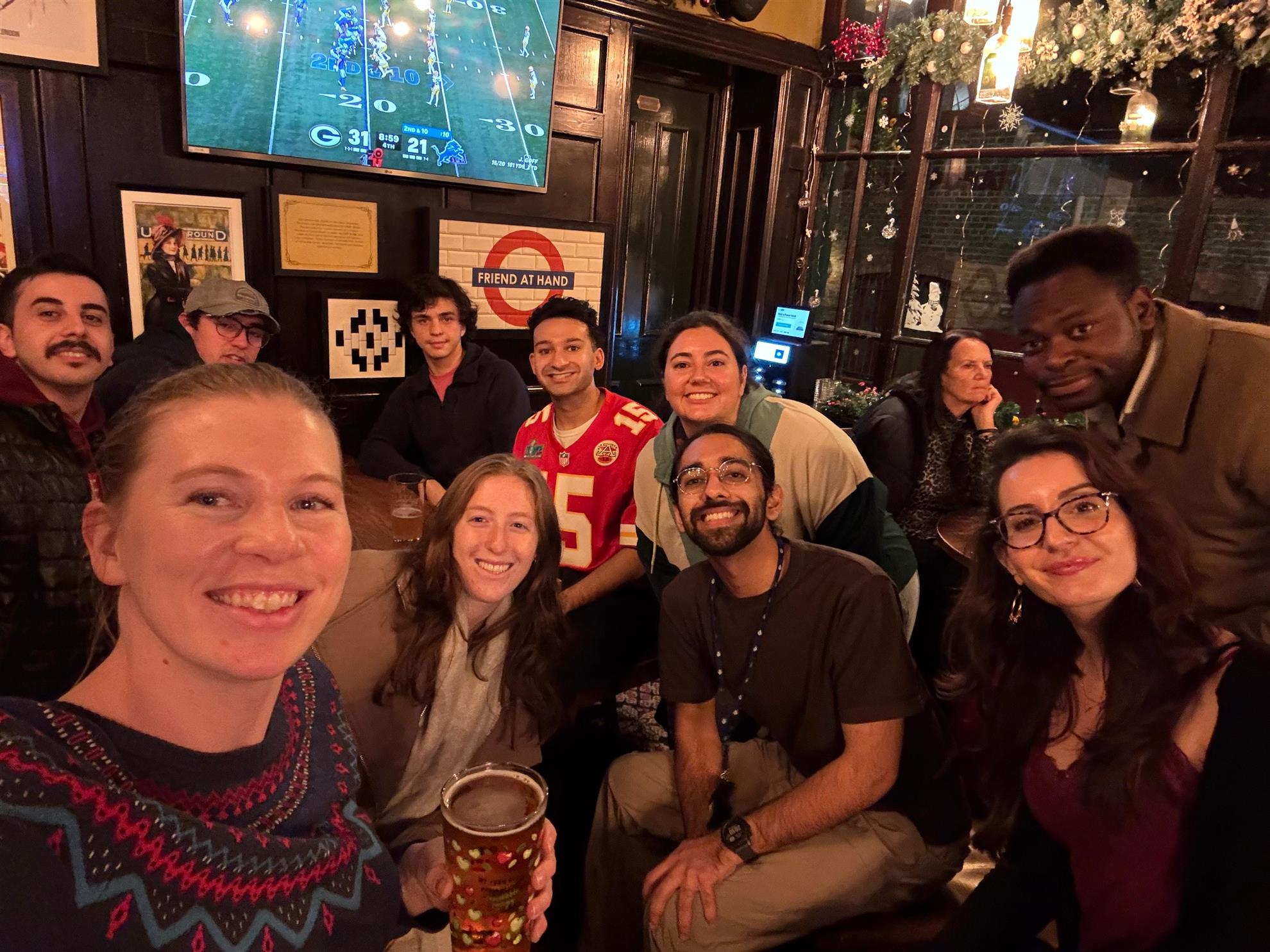 The past few months have been full of learning and settling into life here, and I’m especially excited to be experiencing the holiday season in the city. Christmas lights are appearing everywhere, and they make the longer nights feel surprisingly cozy. Even though I was sad to miss Thanksgiving with my family, my friends at Goodenough College put together a Friendsgiving celebration complete with a nice dinner and American football at the pub — a comforting taste of home.